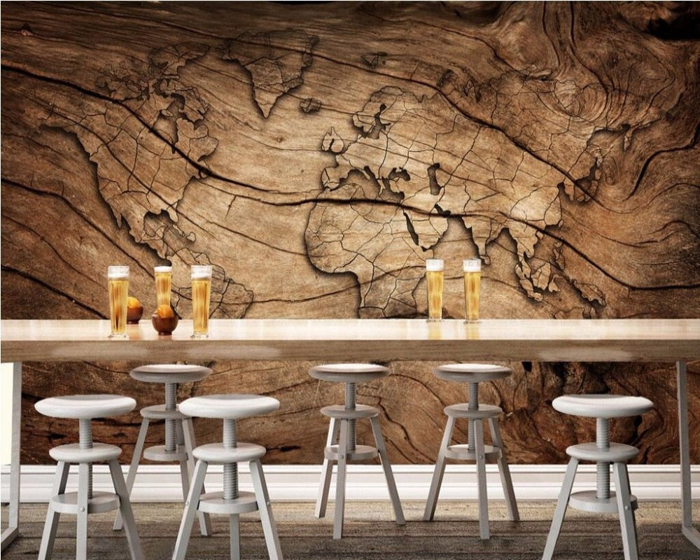 3D Wallpaper Wood World Map SKU# WAL0061