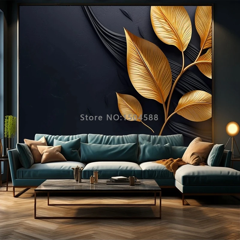 3D Wallpaper Nordic Gold & Black Leaves SKU# WAL0434