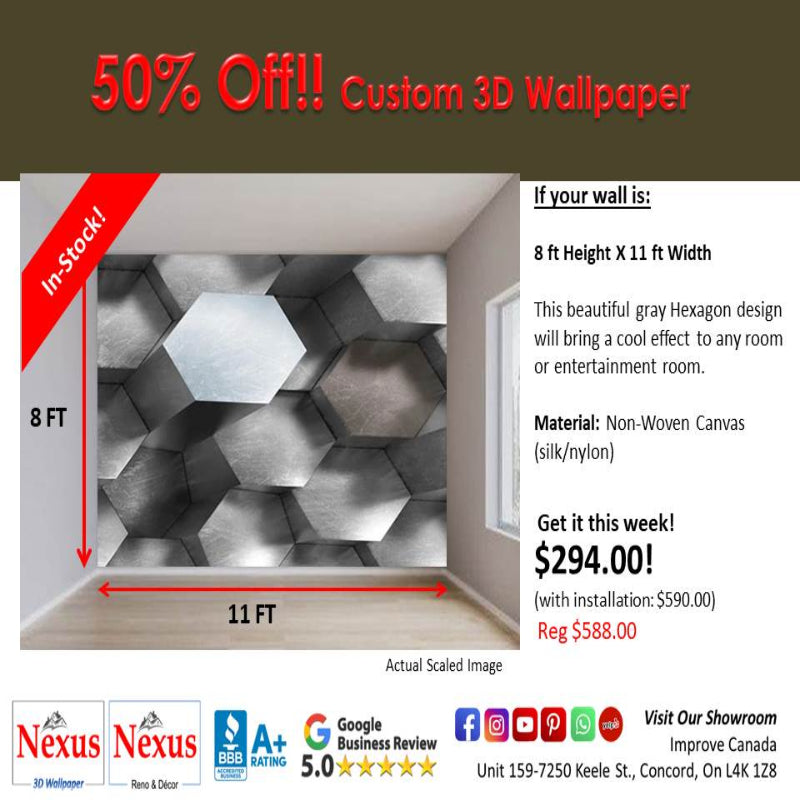 In-Stock Custom 3D Wallpaper Hexagon Design SKU# WAL0611